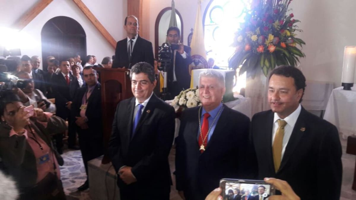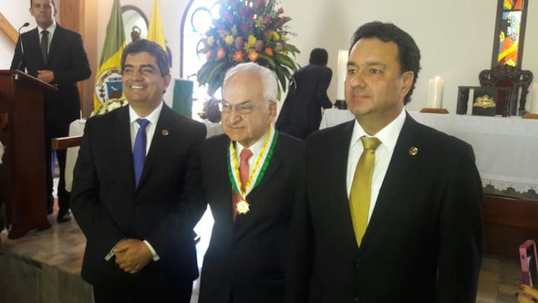 Gobernador del Quindío y alcalde de Armenia con Luis Fernando Ramírez con el Cordón de los Fundadores