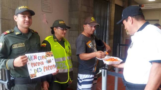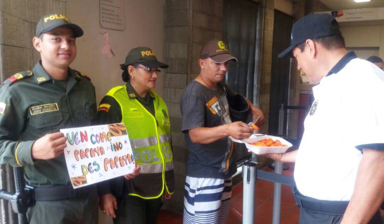 La campaña se denominó "Ven come papaya, no des papaya" la cual se está adelantando en bancos, centros comerciales y áreas de masiva afluencia de personas con el fin de prevenir que los delincuentes aprovechen momentos de distracción de la comunidad.