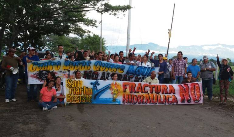 Las protestas han continuado por varios días consecutivos en la vía de acceso al corregimiento de Cuatro Bocas, jurisdicción de San Martí, sur del Cesar, para impedir el comienzo de exploraciones petroleras con el método fracking, en el pozo PicoPlata1, por parte de la empresa ConocoPhillips.