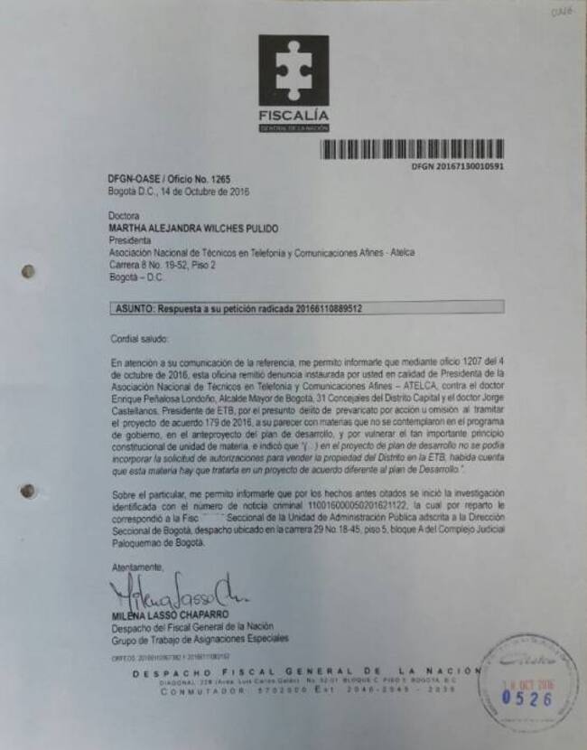 El caso fue asignado a la unidad de los delitos contra la Administración Pública de la Fiscalía, que tendrá la misión de desvirtuar o confirmar si las acusaciones en contra del alcalde, los concejales y el presidente de la ETB tiene asidero en la realidad y requieren de avanzar a imputaciones de cargos.
