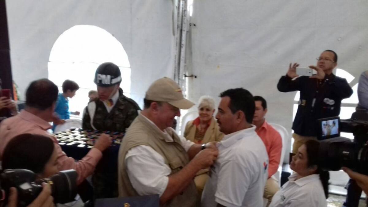 Ministro de la defensa entregando llaves a mujeres viudas de soldados héroes de la patria