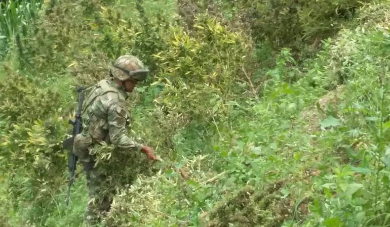 El Comandante de la policía Antinarcóticos en la Regional 5 Coronel Coronel Jhon Chavarro dijo que en la zona se percibe un desproporcionado aumento de hectáreas en algunos municipios y que este fenómeno está muy ligado a problemas que deriva el narcotráfico como disputa de áreas de producción, laboratorios, y más allá al negocio de los grupos al margen de la ley dedicados a esa situación.