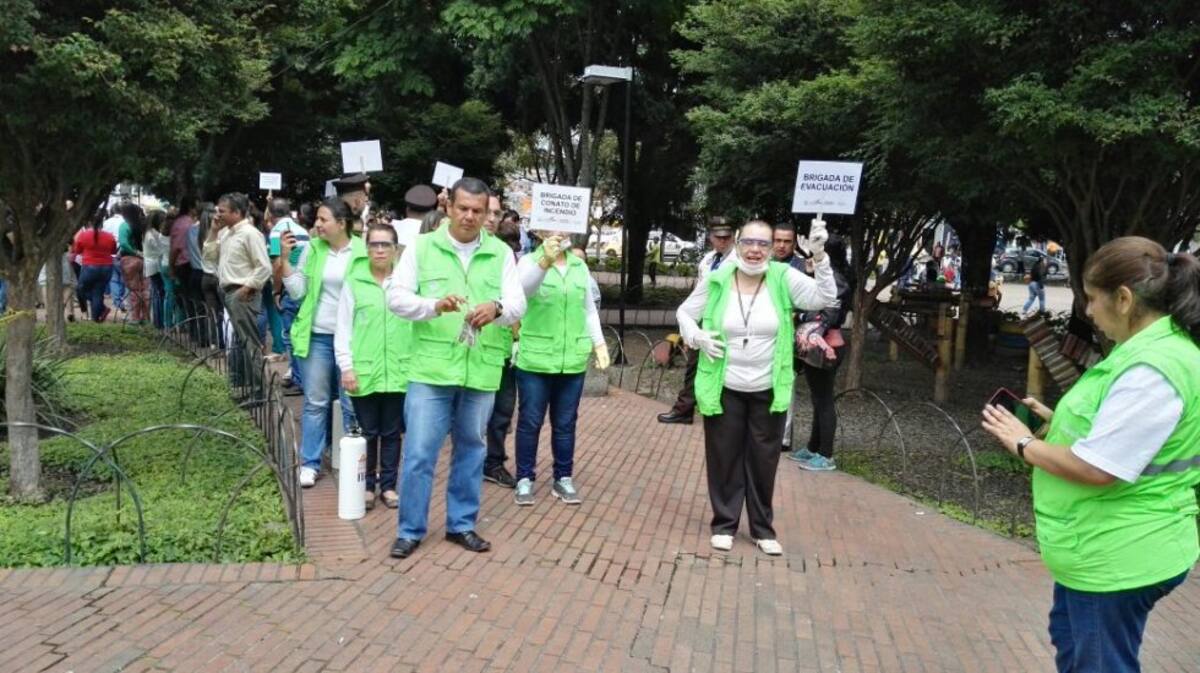 Empleados de la alcaldía de Armenia cumpliendo protocolo de evacuación