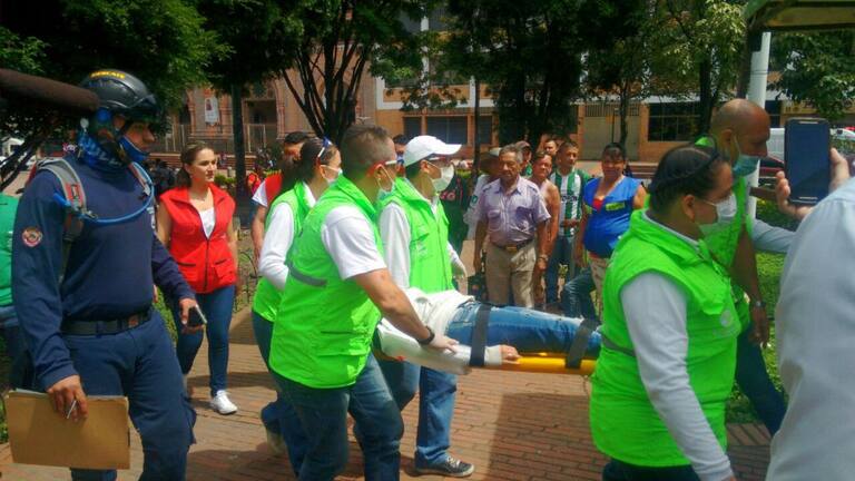 Traslado de pacientes durante simulacro en alcaldía de Armenia