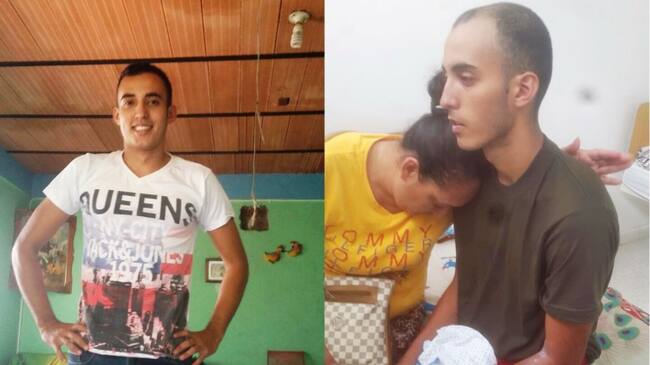 Ricardo Haidy Rodríguez Suarez de 18 años antes de ingresar a la Policía y ahora en la clínica(Foto cortesía para Caracol Radio)