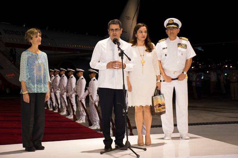 A las 7:00 de la noche llegó a Cartagena el Presidente de Honduras, Juan Orlando Hernández Alvarado, quien fue recibido por la Viceministra de Relaciones Exteriores, Patti Londoño.