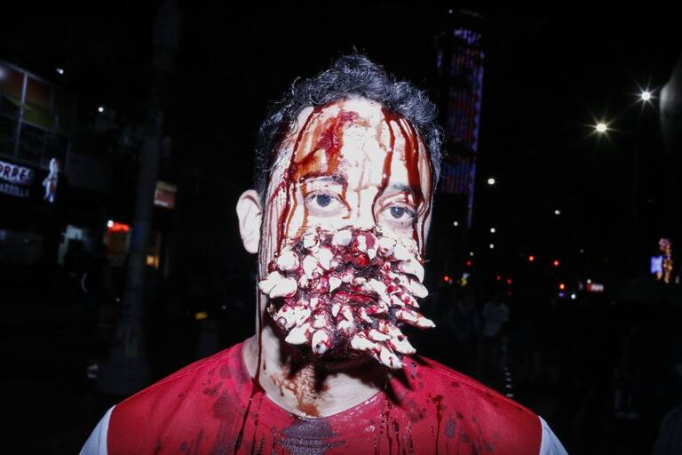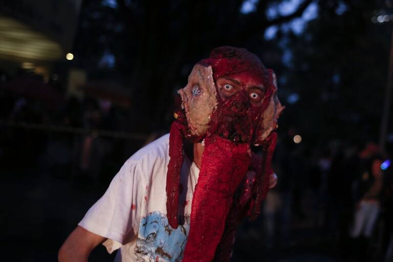 Sangre, heridas y espeluznantes disfraces tomaron parte de la marcha zombie