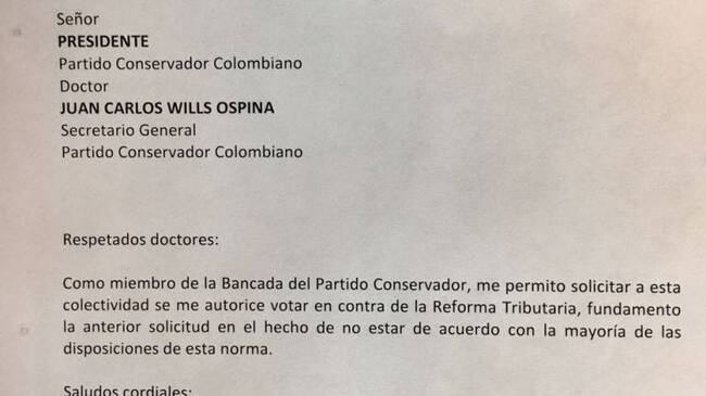 La carta de solicitud fue enviada al presidente del Directorio Nacional Conservador, David Barguil y al secretario general de la colectividad, Juan Carlos Wills.