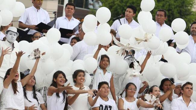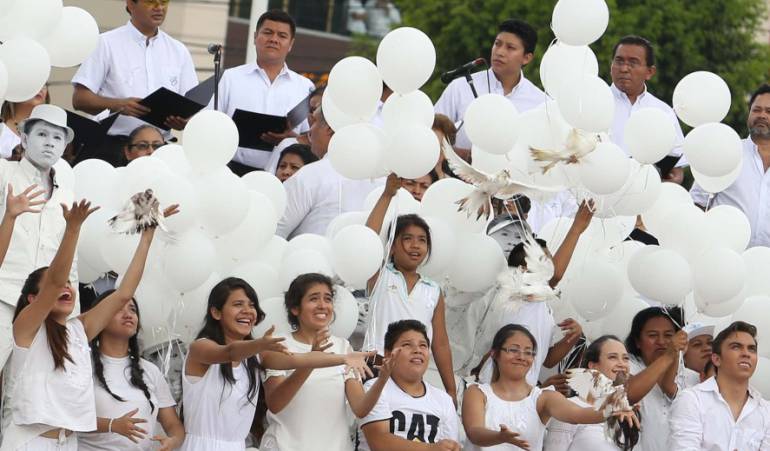 Cada uno de los pañuelos lleva un mensaje alusivo a la paz, que previamente fue enviado por la comunidad a través de las redes sociales.