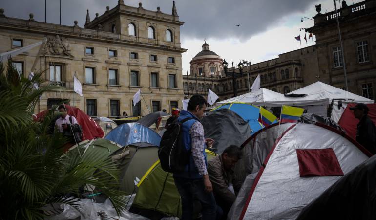 Dos altos funcionarios del Gobierno Nacional rechazaron el procedimiento de la Alcaldía de Bogotá para desalojar el campamento por la paz, que completó 45 días en la Plaza de Bolívar.