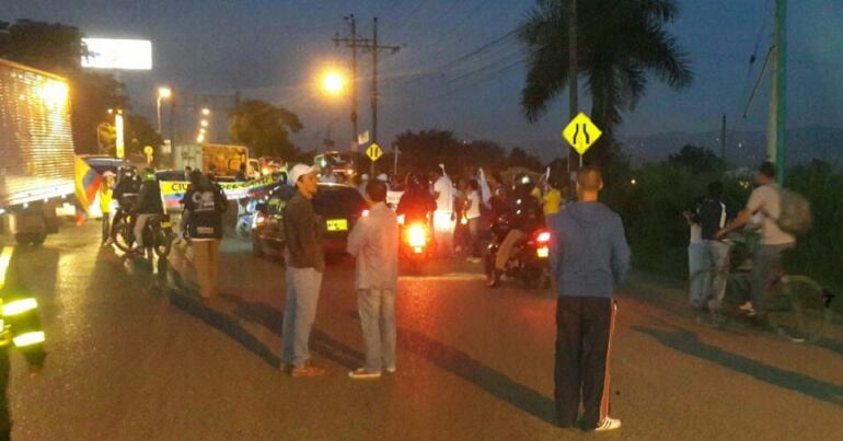 "En esta zona hay aproximadamente 8.000 viviendas, pagamos impuestos y pedimos que eso se vea reflejado en inversiones que permitan mejorar la carretera, que NO le corresponde a Candelaria sino a Palmira", expresó uno de los manifestantes.