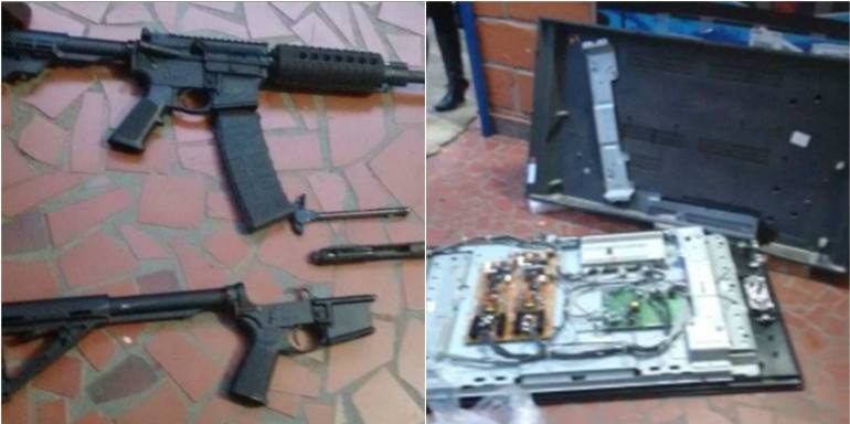 “Dichas armas se encontraban desarmadas y camufladas en un televisor de 43 pulgadas, enviado mediante una encomienda proveniente de la ciudad de Bogotá, las cuales previamente procedían de la ciudad de Miami en los Estados Unidos y estarían destinadas a fortalecer el poder armamentístico de esta organización delincuencial”, aseguró la institución castrense.