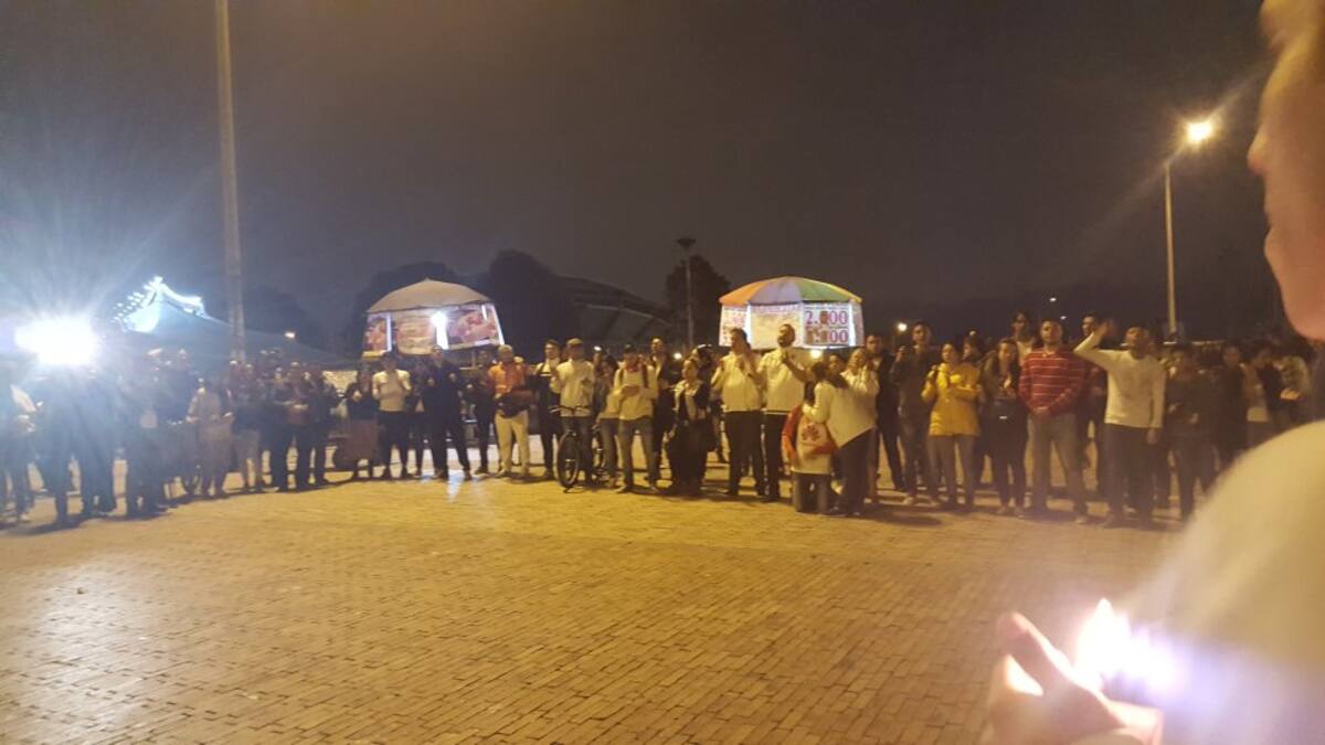 Con velas y una vigilia frente al Camp´´in, hinchas en Bogotá también participan a distancia del homenaje que se adelanta en Medellín.