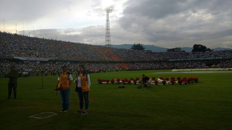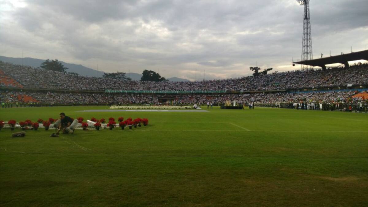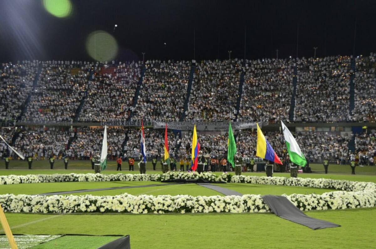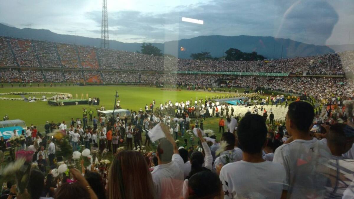 Con flores, banderas, bombas y camisetas blancas, el estadio de Medellín se llenó para gritar #FuerzaChapecoense