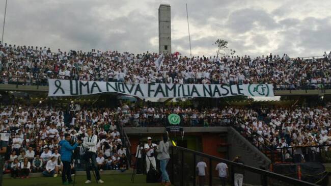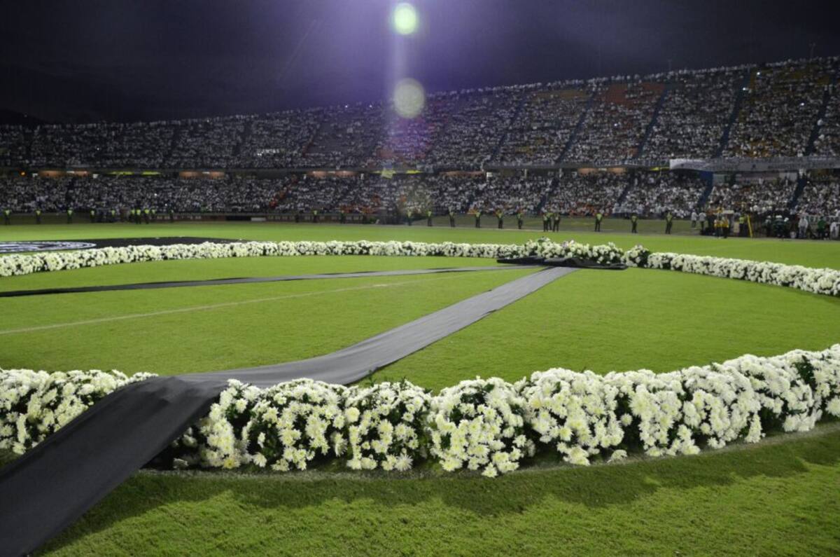 Nacional y Chapecoense iban a jugar la final de la Copa Suramericana a la misma hora y lugar donde ahora les rinden homenaje a los jugadores fallecidos.