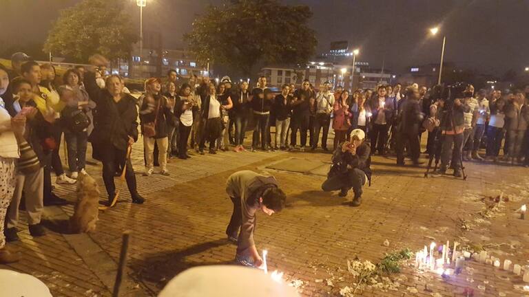 Velas y globos en Bogotá, donde los hinchas del fútbol también se unen al homenaje que adelantas hinchas de otros equipos en el país.