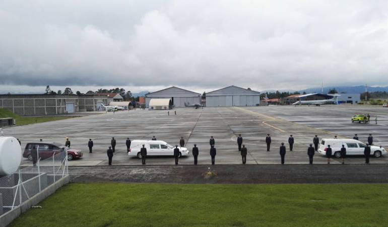 "Ellos llegaron por tierra desde Medellín, escoltados por una caravana de la Policía e inmediatamente una vez llegaron a nuestra unidad aérea, recibe la fuerza aérea el dispositivo e iniciamos nosotros las actividades", manifestó el coronel Fabio Alberto Sánchez, comandante del base de la Fuerza Aérea Colombiana número 5.