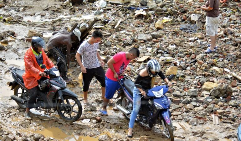 El riesgo en la zona es latente porque hay una cañada que esta represada por la caída del derrumbe y además por los enseres de la vivienda que resultó afectada en esta emergencia y amenaza con un desbordamiento.