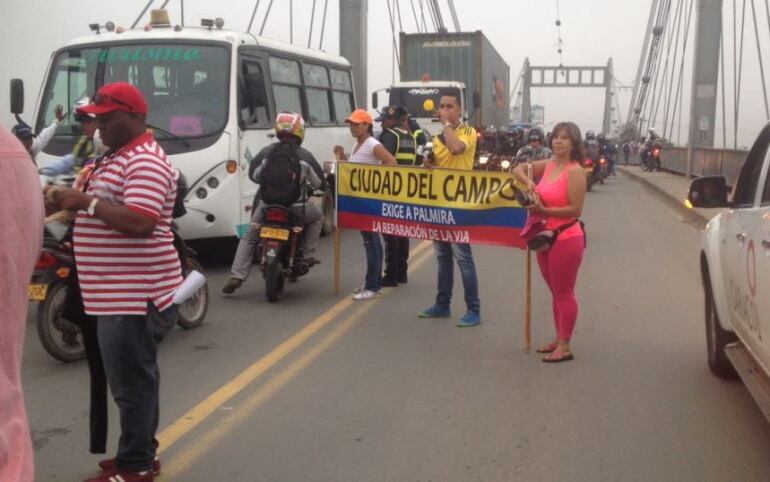 Desde de las 5:30 a.m. habitantes de Ciudad del Campo, en el sector de Juanchito, se reúnen para protestar ya que, el municipio de Palmira aún no les da respuesta de cuándo les van a arreglar su única vía de acceso, afirmó la comunidad.