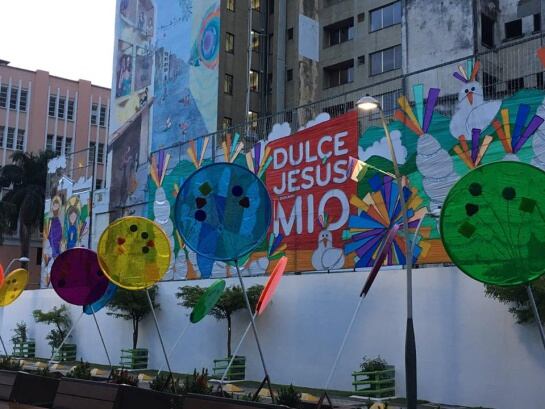 En la Catedral de San Pedro hay proyección un ‘mapping’ que representa los ‘mundos del dulce’, el Parque de las Banderas tiene un mural, al igual que la Plazoleta 'Yo amo a Siloé', y la calle 5 también está endulzada.