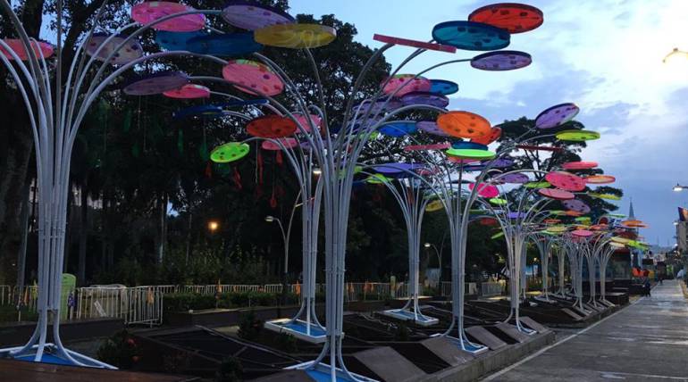 De todos los colores son las 2,6 millones luces LED que están en lugares como el Bulevar del Río, que se encuentra invadido de chupetas gigantes y allí también está el túnel de algodón de azúcar; el Puente Ortíz tiene algodones y los árboles de la Avenida Sexta no dan frutas, pero si tienen dulces.