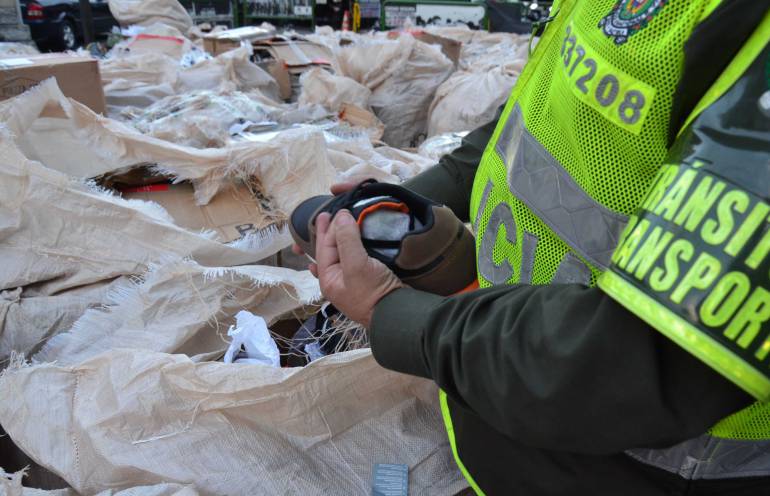 “En ese camión se encuentra mercancía de diferentes elementos avaluados en aproximadamente 200 millones de pesos, esto es mercancía ilegal que venía para ser distribuida por Medellín por la temporada navideña”, sostuvo la comandante de distrito sur del Área Metropolitana, coronel Susana Blanco.