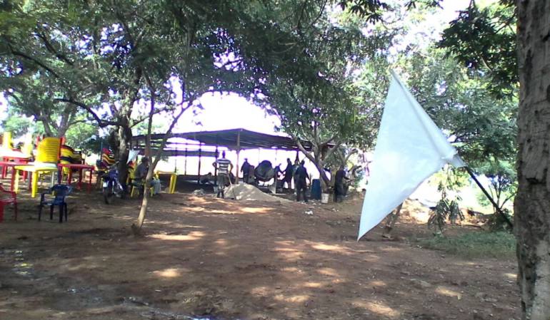 Los integrantes de Las Farc destinados a la labor de construcción empiezan su trabajo mientras otros se distribuyen la labor de vigilancia y control del punto de preagrupamiento ubicado en La Paz, Cesar.