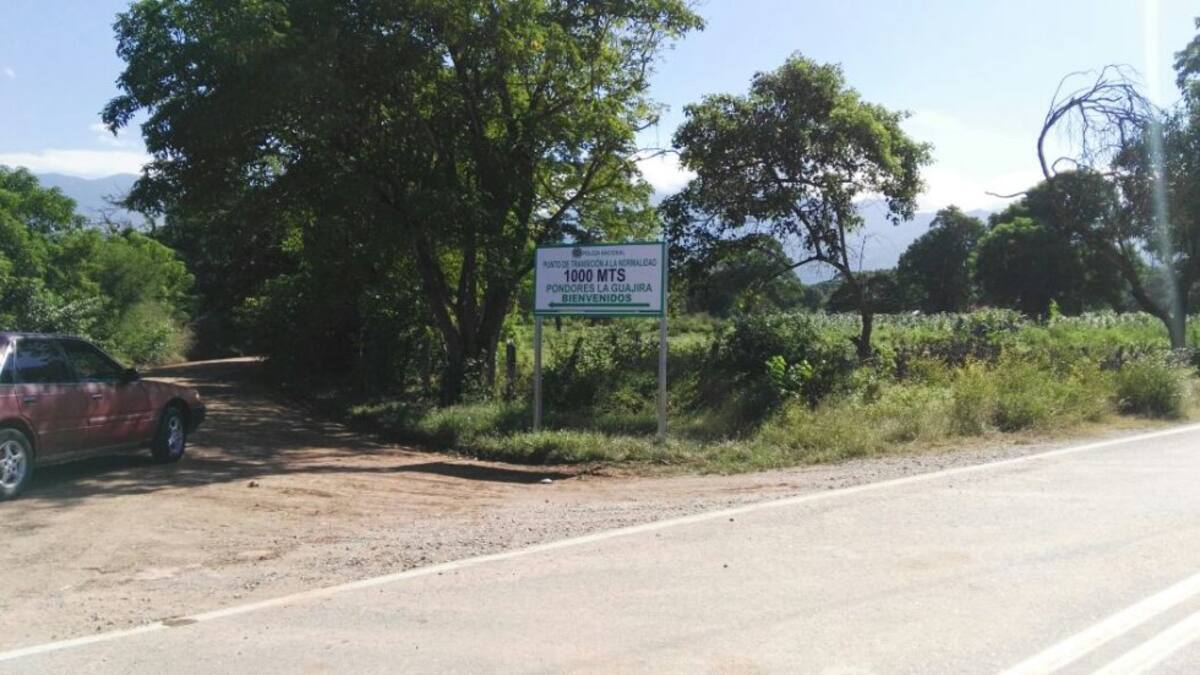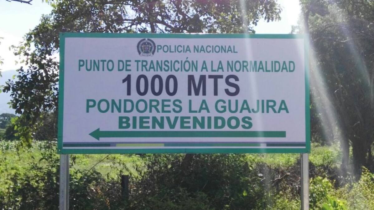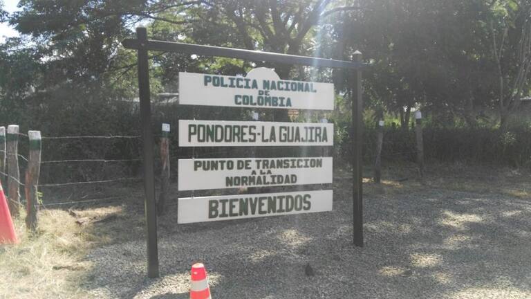 A escasos 500 metros del casco urbano de Conejo, un desvío lleva a Pondores, la zona de concentración final de las Farc