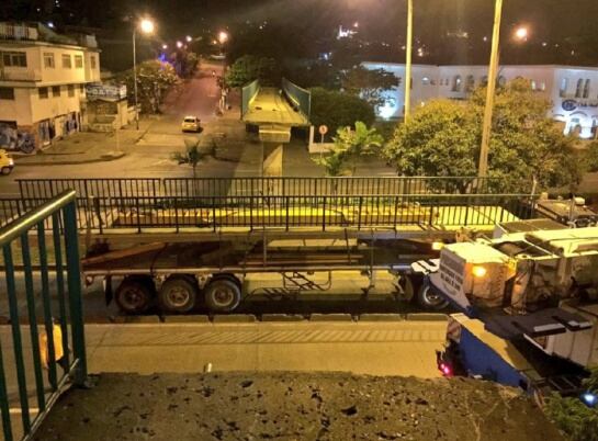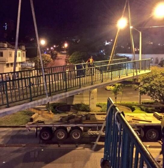 Cinco meses atrás, una tractomula derribó la mitad del puente peatonal de la calle 5 con carrera 23, pero este fue instalado en la madrugada de hoy, con el acompañamiento del secretario de Infraestructura y el alcalde de Cali.