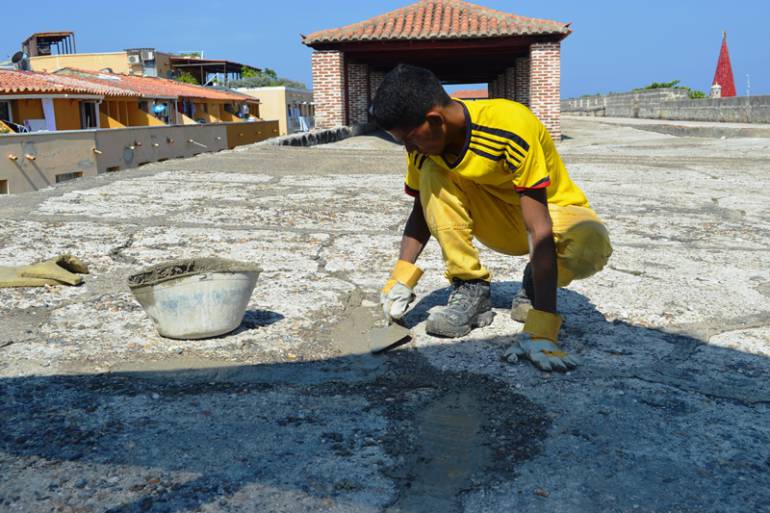 En 2016 la Escuela Taller Cartagena de Indias (ETCAR) intervino las grietas en las murallas de Getsemaní