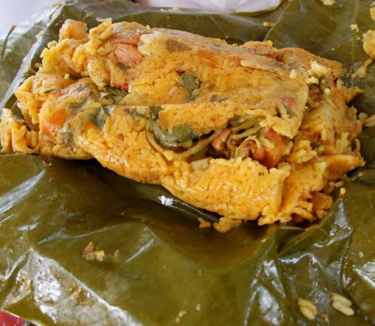 Esta mezcla de arroz, cerdo, pollo y verduras envuelto en hojas de bijao tiene su propio festival.