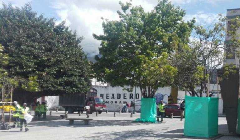 30 operarios de la Empresa Metropolitana de Aseo, Emas, trabajan en el cubrimiento de los 1.500 árboles que buscan ser protegidos para evitar daños por el uso de talco y otros elementos de Carnaval.