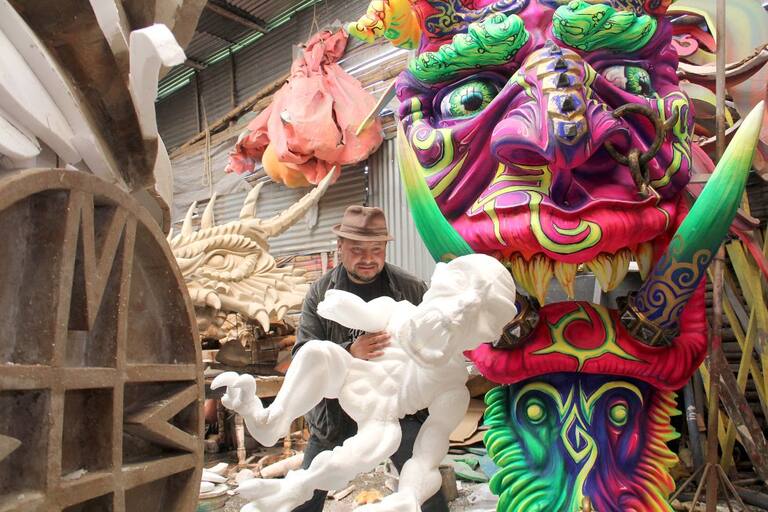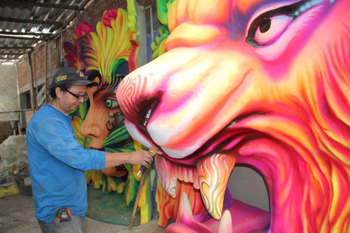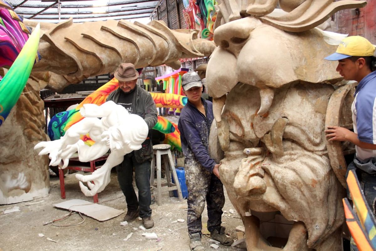 Los artesanos son los responsables detrás de las monumentales carrozas cuya preparación y elaboración comienza meses atrás de la festividad.