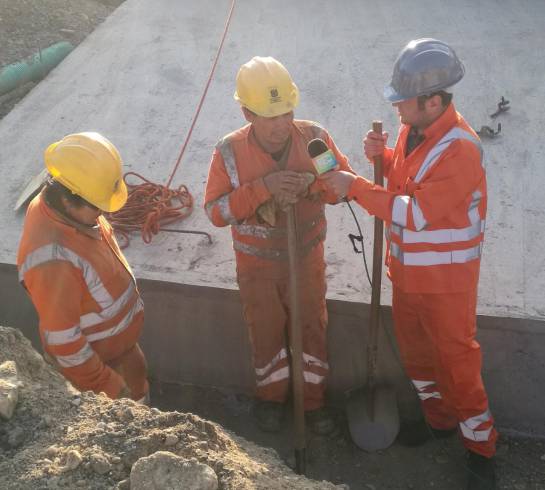 Desde la 6:00 de la mañana comienza el trabajo de un obrero del turno de la mañana, llega se pone su casco, overol, botas e inicia la labor. La pala y el palustre son la compañía diaria y dependiendo de la obra se trabaja en diferentes frentes.