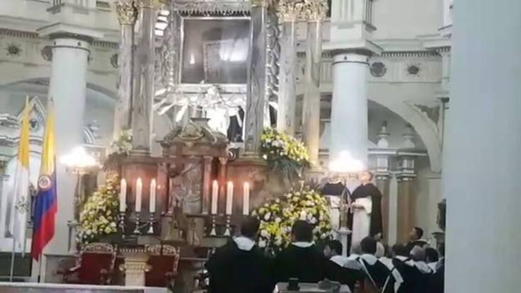 Pasadas las 5:00 de la mañana de hoy, los frailes dominicos realizaron el descenso de la Virgen de Chiquinquirá, en medio de un momento de oración.