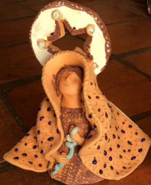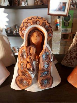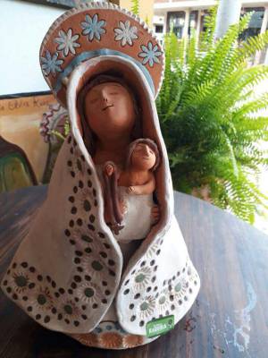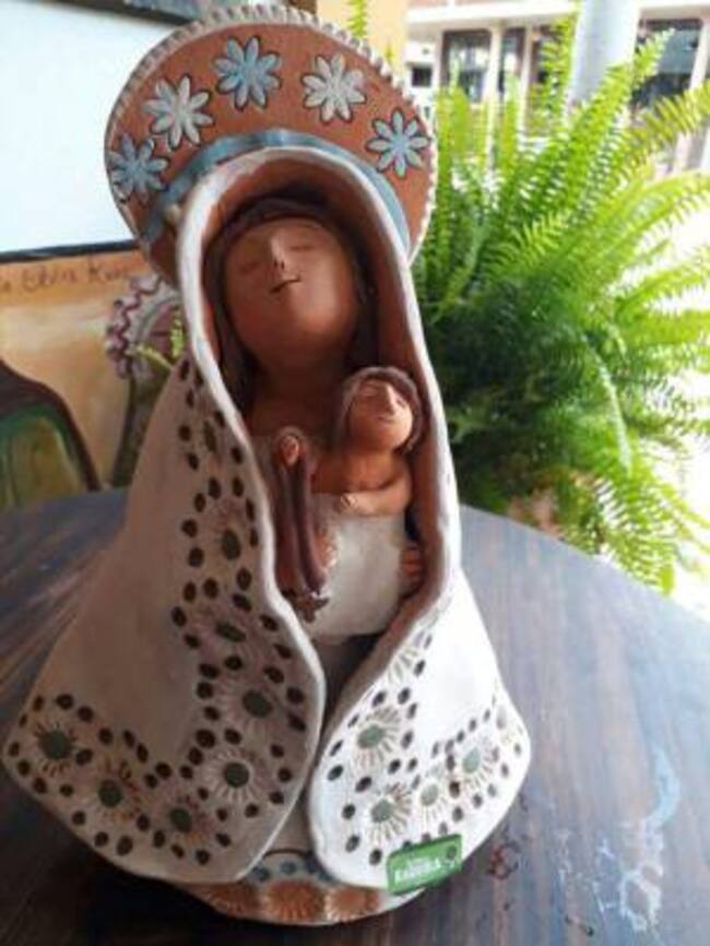 “El arte de la alfarería y las ganas por hacer las vírgenes de Barro, se lo aprendí a mi madre, doña Otilia Ruiz, quien nos enseñó la técnica junto con mi hermana mayor. Yo veía las imágenes santas en la iglesia, y a mí me parecía que eran reales. Cuando mi madre me dijo que no eran de carne y hueso sino de yeso, y que el yeso se podía moldear parecido al barro, ahí quise hacer ‘virgencitas’ del barro con el que mi mamá hacía tantas artesanías típicas de esta región. Y con el paso de los años, se convirtieron en algo que sólo sabemos hacer en este taller”, relató sobre la historia de las ‘Otilias’ doña Rosa María.