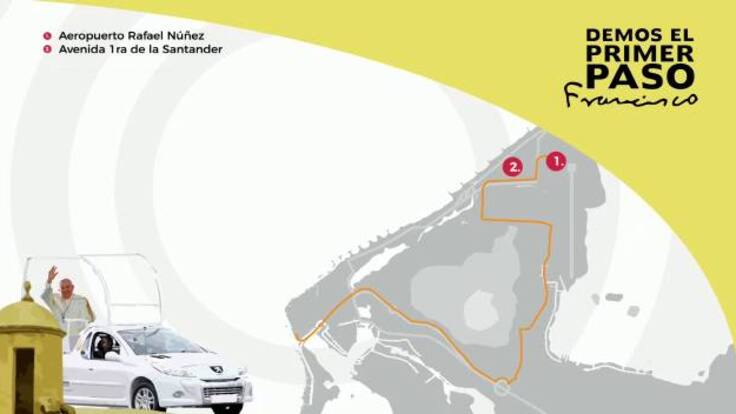 A su llegada a Cartagena, el santo padre saldrá del aeropuerto internacional Rafael Núñez hacía la avenida Santander, pasará por el puente Romero Aguirre, carrera 17 del barrio Daniel Lemaitre, calle 6 en el barrio 7 de Agosto, hasta llegar a la iglesia en el barrio San Francisco.