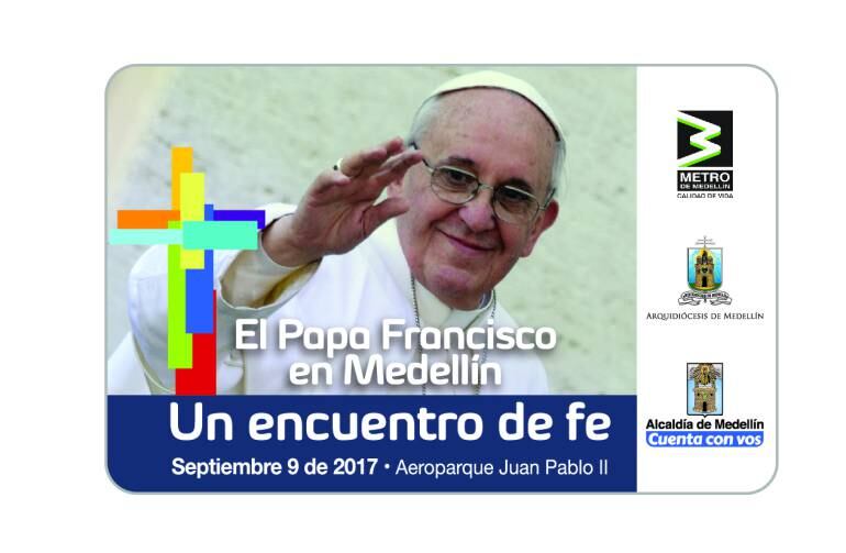 La tarjeta Cívica del metro, conmemorativa de la visita del papa Francisco a Medellín, se está agotando, pero todavía se pueden adquirir en algunas taquillas de las estaciones del metro.