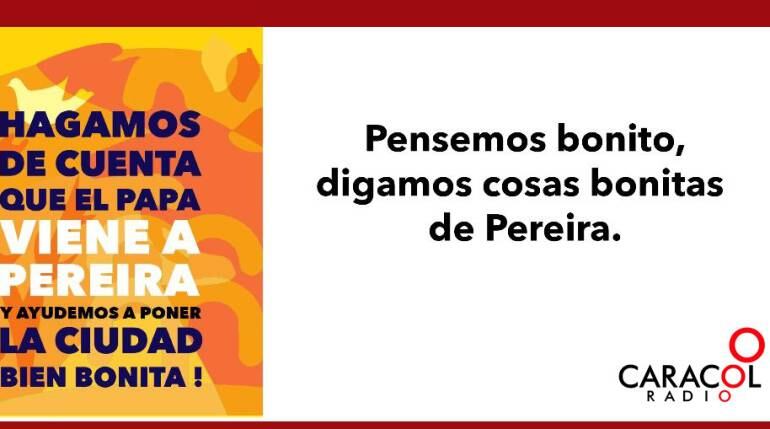 "Siempre hay motivos y razones para cuidar y embellecer nuestra Perla, y pues cuando viene visita la casa se arregla; así que a darle amor a Pereira, a limpiar sus calles, a organizar sus parques y a poner todo en orden #PorSiVieneElPapa" dice Daniel Zapata en su cuenta de Facebook invitando a los ciudadanos de Pereira a sumarse a la campaña que empezaron los colectivos sociales, sector empresarias y Caracol Radio Pereira con el propósito de hacer viral la iniciativa de pensar cosas buenas y hacer cosas mejores para la ciudad con la excusa de la visita del papa Francisco a Colombia.