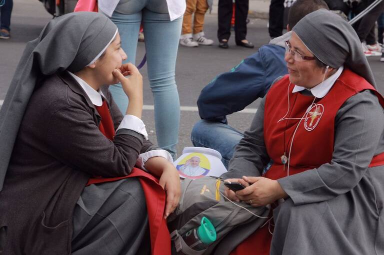 Personas de la comunidad religiosa se reunieron en Teusaquillo para esperar al papa Francisco