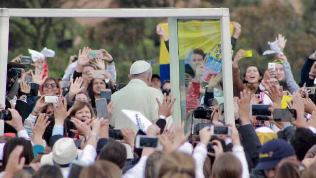 Foto 8 de 18El papa Francisco llegó Simón Bolívar, pero antes de iniciar la eucaristía decidió recorrer el parque y saludar a los feligreses.