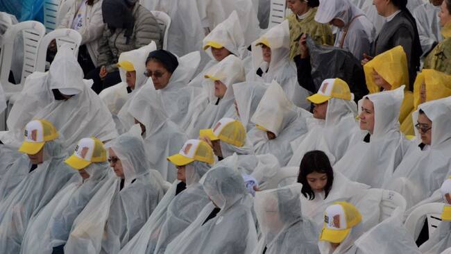 Foto 2 de 18Antes de que se iniciara la misa homilía cayó un aguacero que no impidió que los feligreses se mantuvieran en el parque Simón Bolívar.
