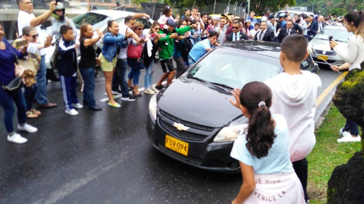 Fue recibido en el aeropuerto José María Córdoba por aproximadamente 1.000 personas.