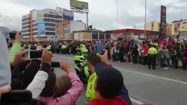 Pese al despliegue policial, en algunos puntos de la Avenida El Dorado la multitud era tanta que se formó un embudo que obligó a la caravana a aminorar la velocidad.