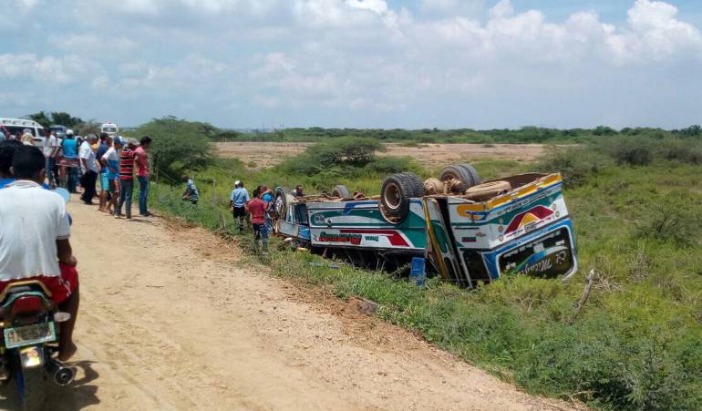 Un aparatoso accidente de tránsito se registró a las 11:15 de la mañana de este sábado en la vía que conduce de Palermo hacia el municipio de Sitionuevo, ambas poblaciones del departamento del Magdalena, cuando un bus de servicio interdepartamental de pasajeros se volcó dejando una persona muerta y 20 más heridas.