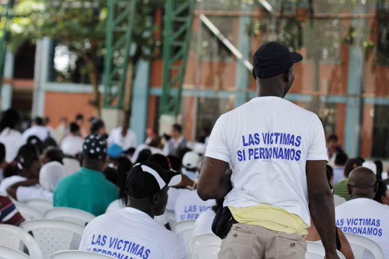 “Por eso estamos recibiendo con regocijo y las comunidades marchantes de San Basilio de palenque y las comunidades asociadas apoyamos y agradecemos al Estado colombiano que se ocupe de venir a nuestros territorios a conocer las versiones libres de nosotros sobre tantas masacres y tantos vejámenes que cometieron esos grupo en nuestras comunidades.”