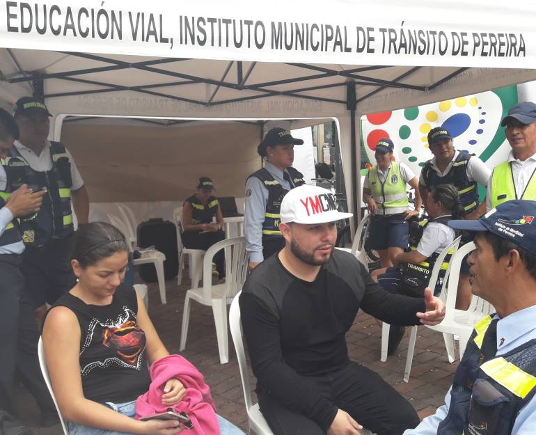 En la carpa de cultura vial del instituto de Movilidad de Pereira, los infractores del día sin carro y sin moto, fueron capacitados en educación víal y medios de transporte alternativo.