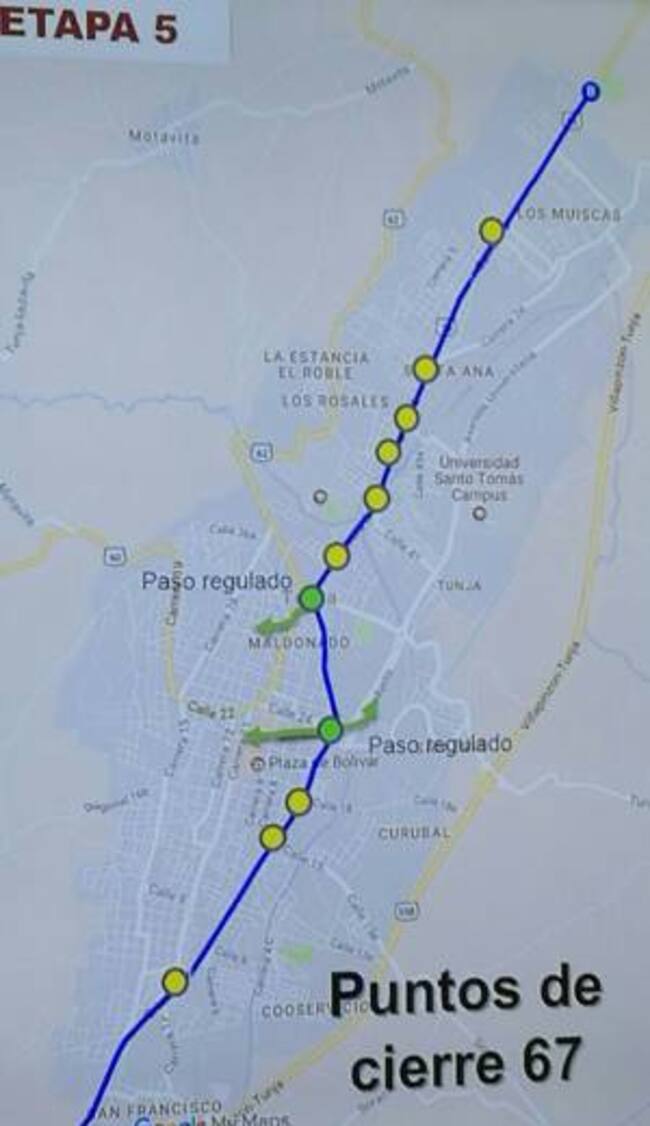 4. Los cierres viales a la altura de los municipios de Duitama, Tibasosa, y Sogamoso, iniciarán desde las 11:30 am hasta la 1:30 pm.