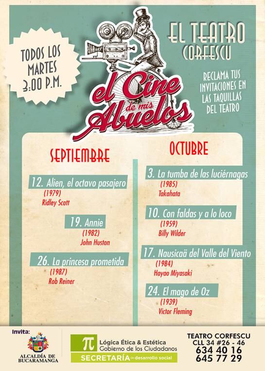 El Teatro Corfescu, con apoyo de la Alcaldía de Bucaramanga, presenta su ciclo de séptimo arte 'El cine de mis abuelos'. Dirigido a todo público todos los martes desde las 3 PM.