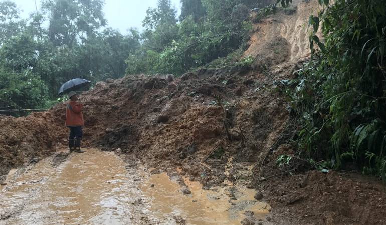 Los derrumbes en la vía hacia Santuario ya están siendo intervenidos por maquinaria de la secretaría de infraestructura y ya se habilitó el paso hacía el departamento del Chocó.